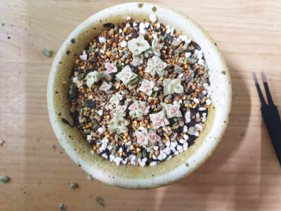 자른 다육이를 복토에 하나씩 꽂아준다.