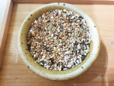 준비된 화분에 배수층을 난석과 코코칩 바크를 넣어준다.