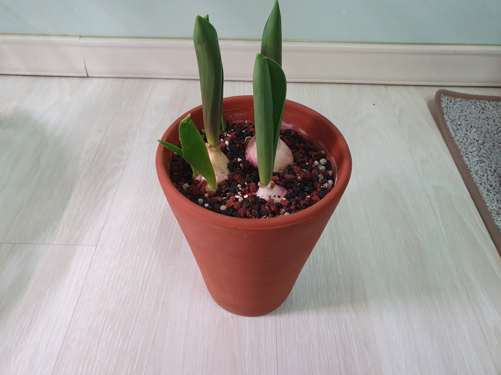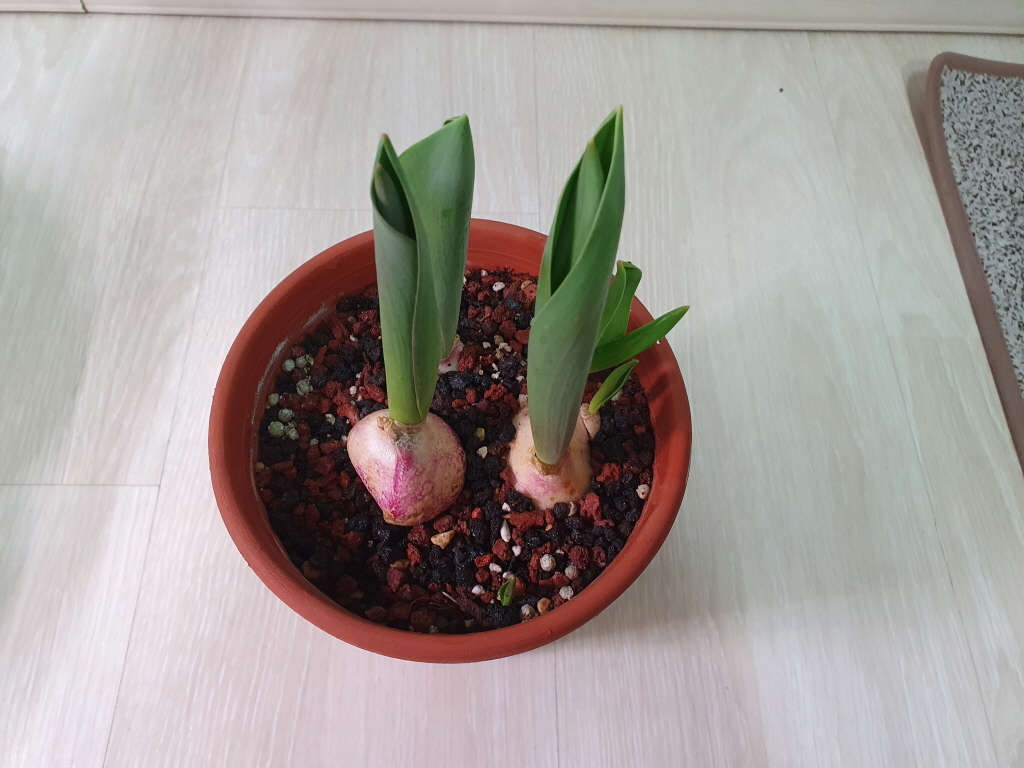 그래야 반듯하고 곧은 튤립이 나오며 마지막에 예쁜 꽃을 피어주게 된다.
